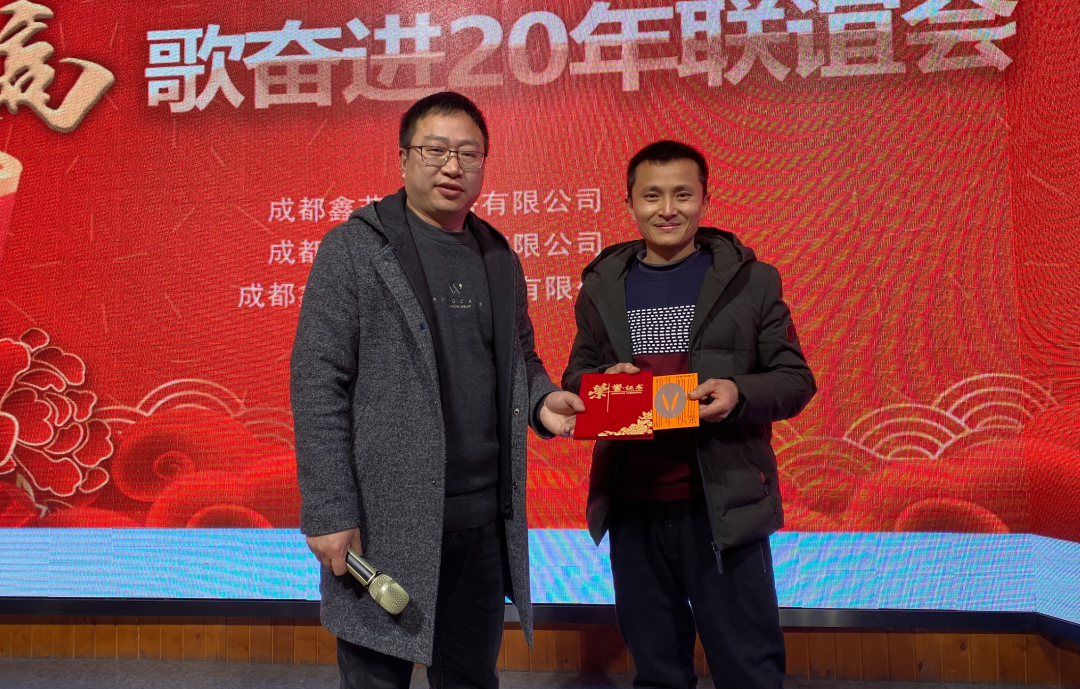 王總為優秀員工頒發證書與紅包